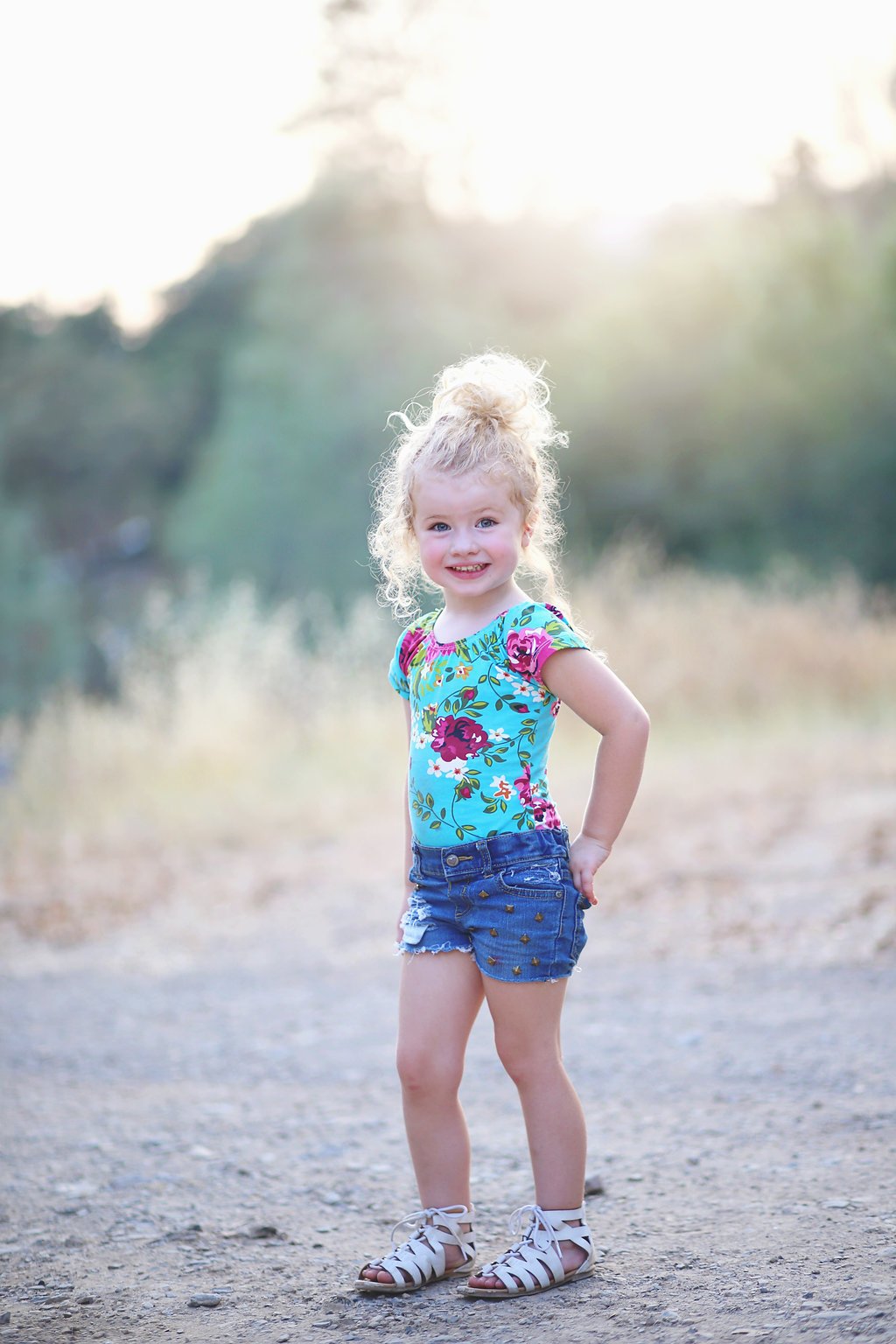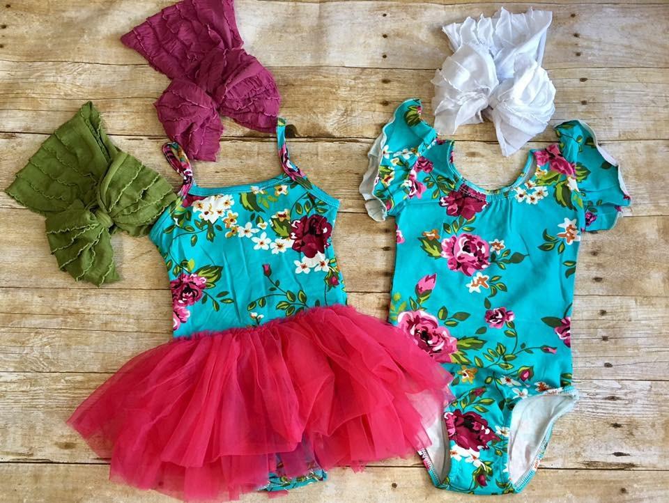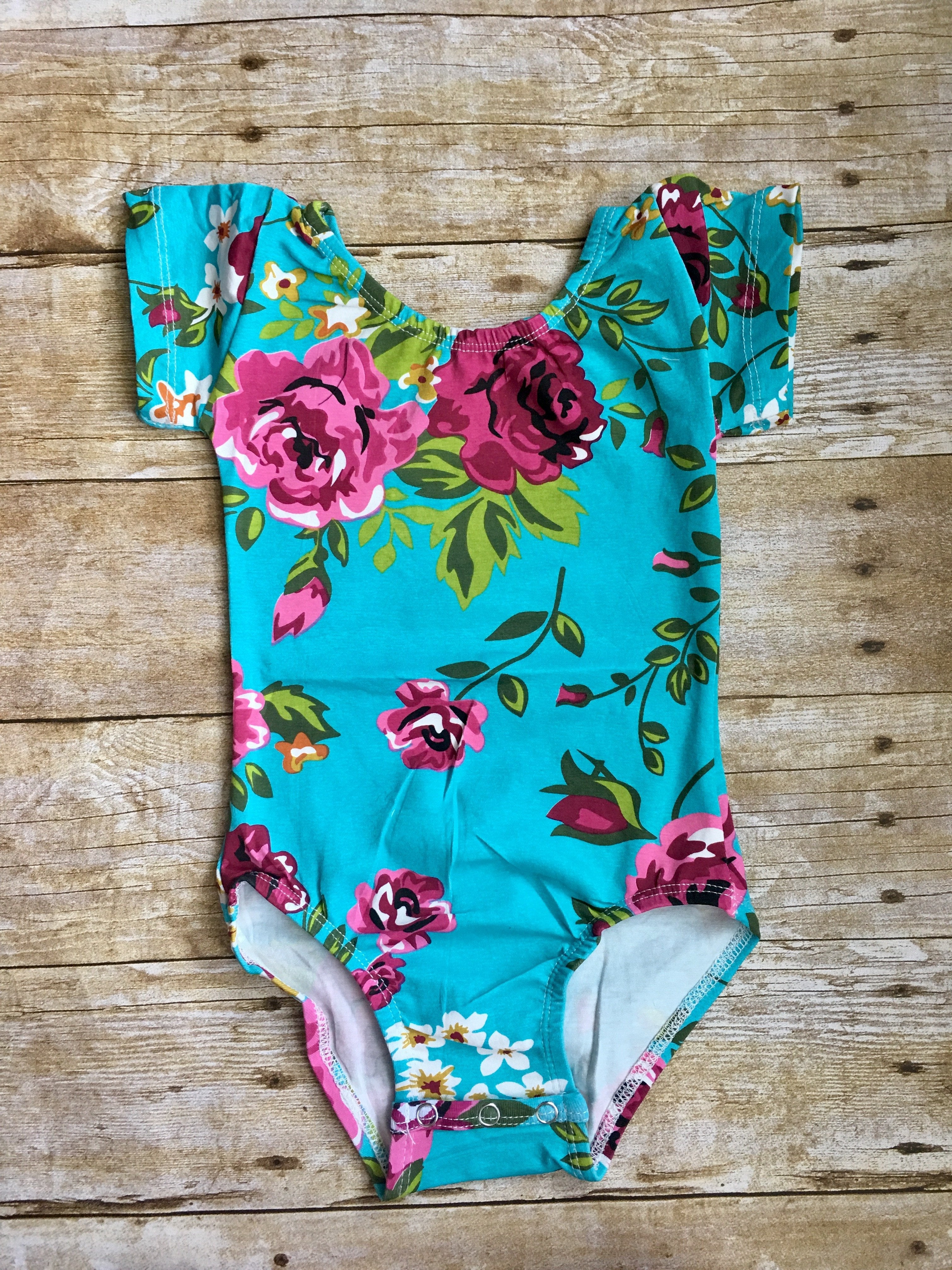 Teal Floral Cap Sleeve Leotard