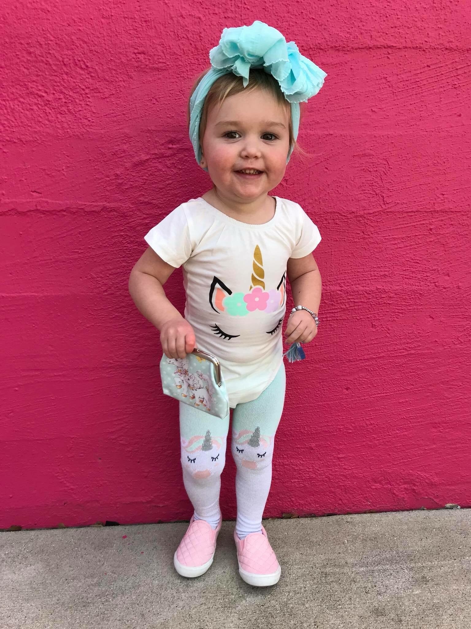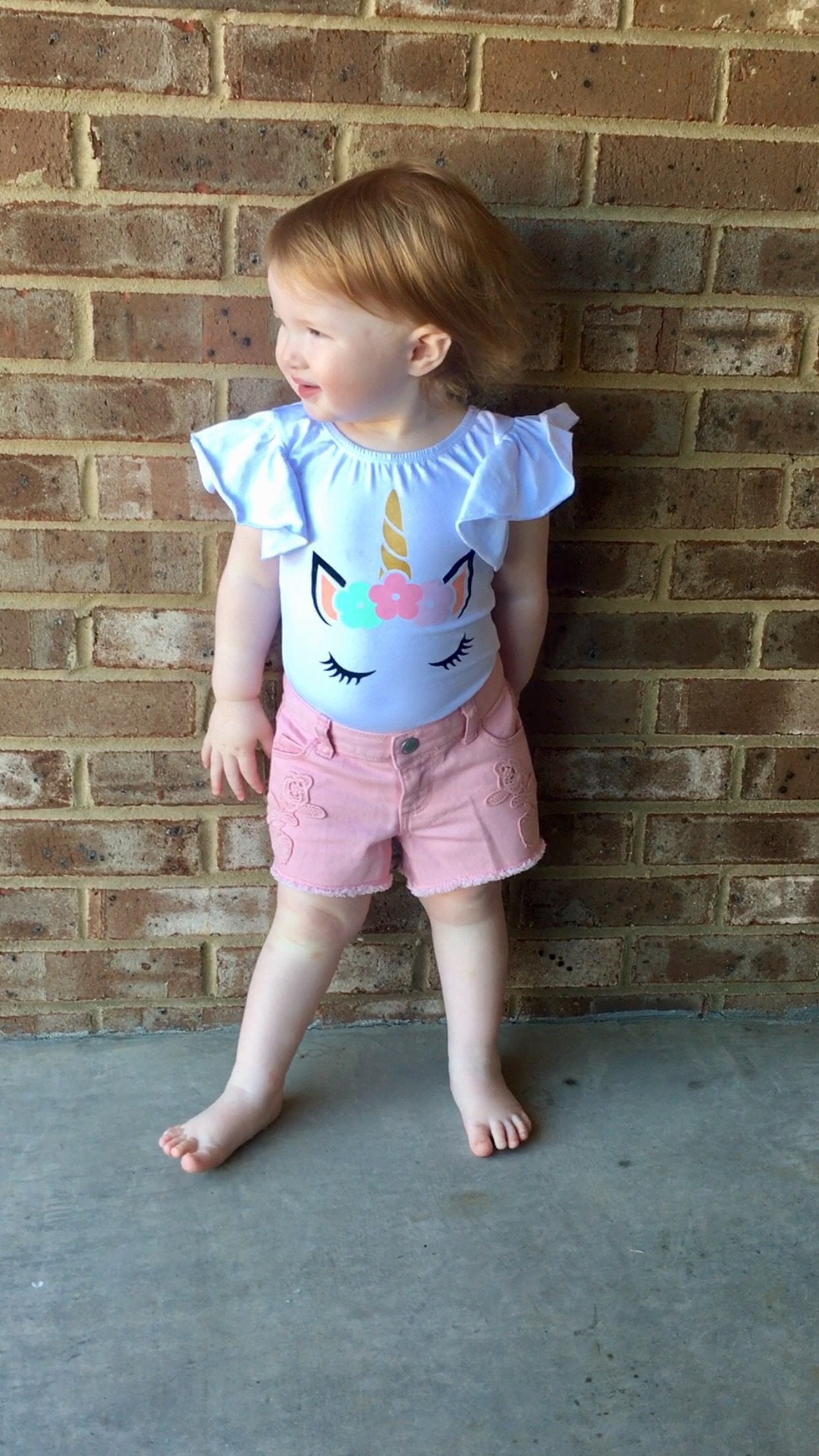 This design is screen print therefore the color pictured is what is available.  The unicorn has a pastel flower crown with a gold shimmer horn.
