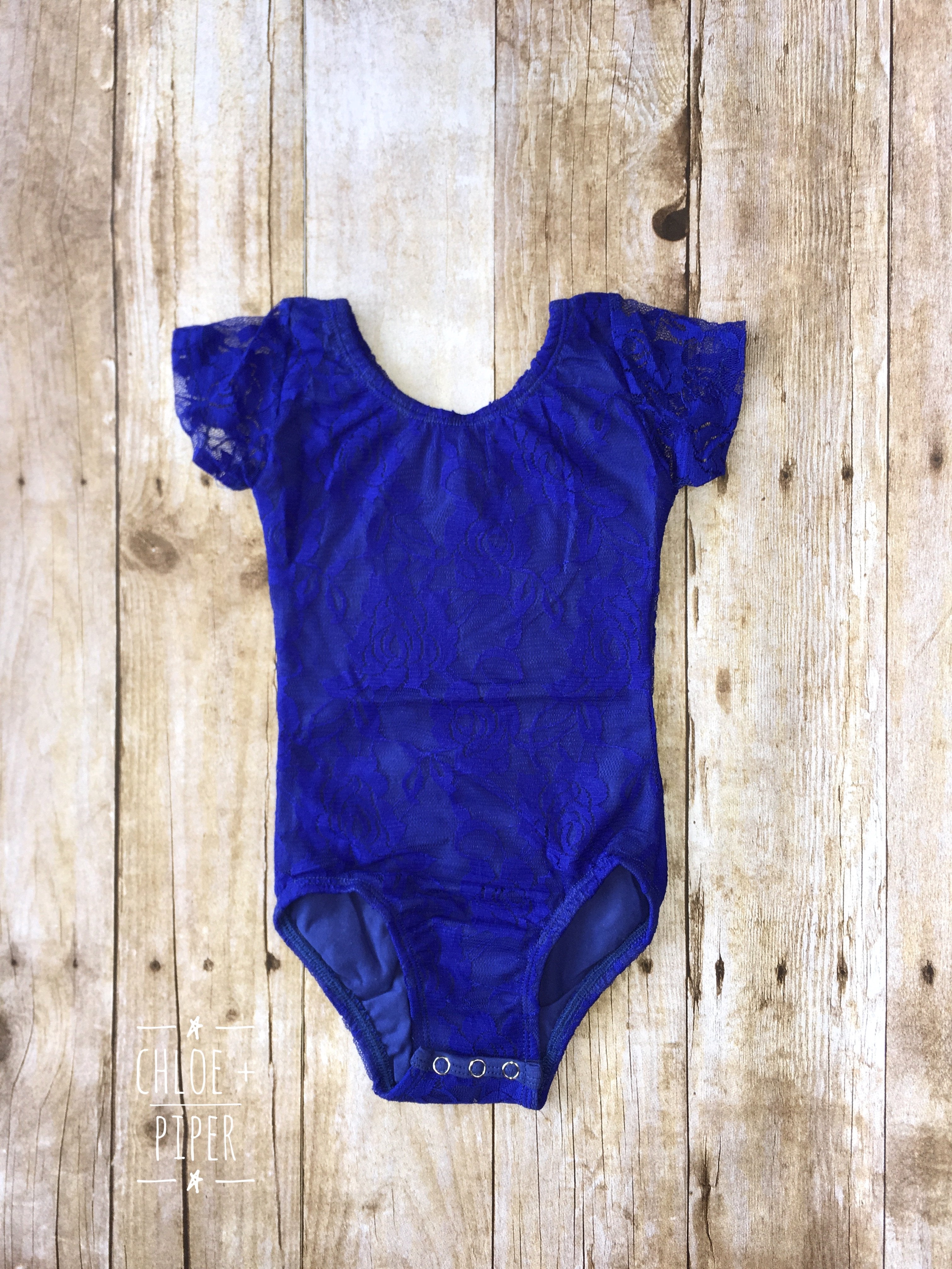 Royal Blue Short Sleeve Lace Leotard (size up)