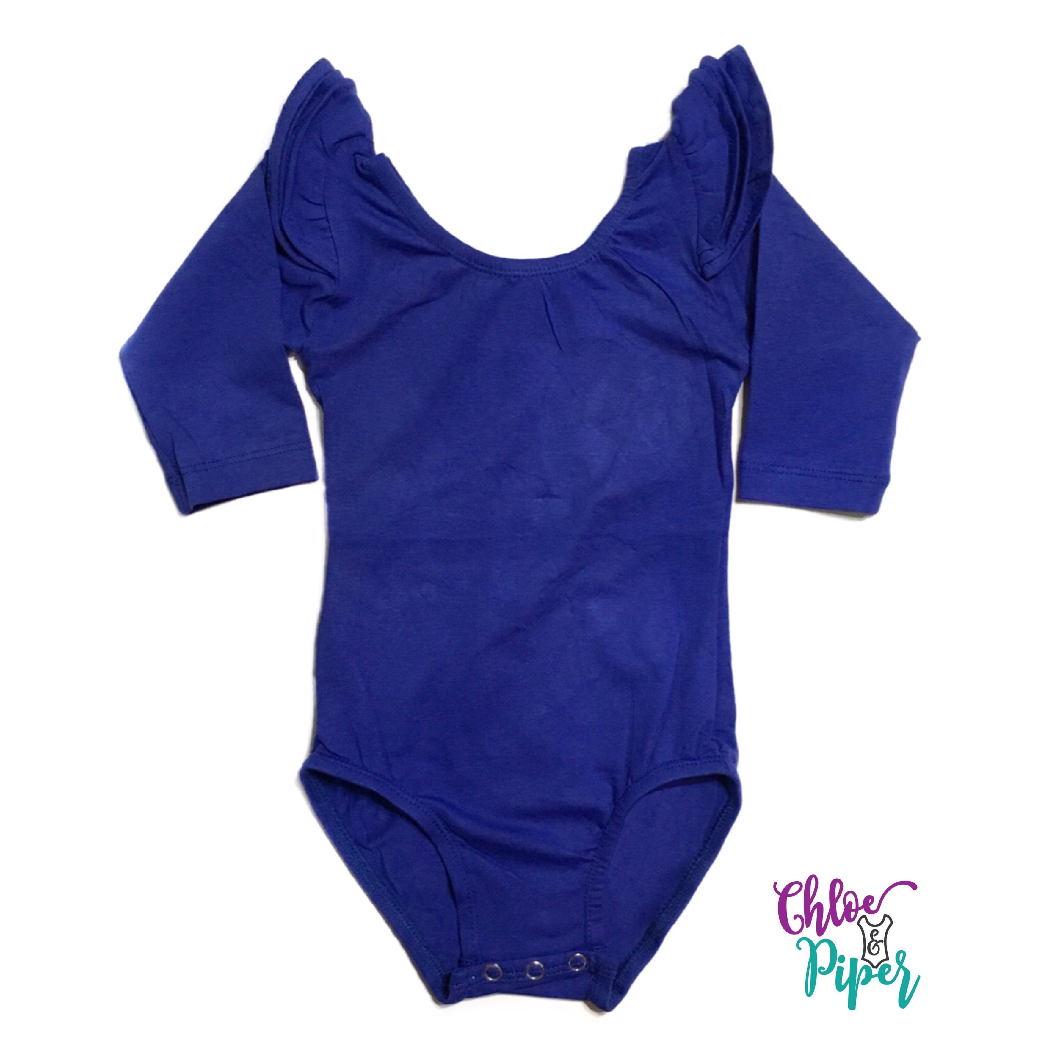 Royal Blue Long Sleeve with Triple Ruffle Leotard