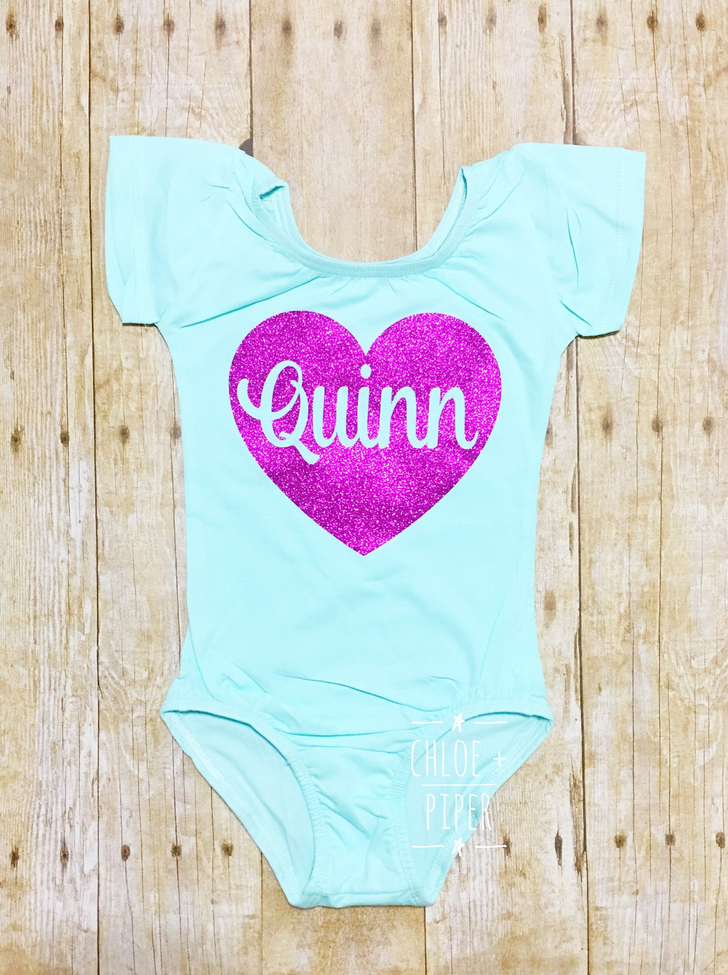 The name inside the heart is a cut out. The name will be the same color as the leotard chosen (see pictures for examples)