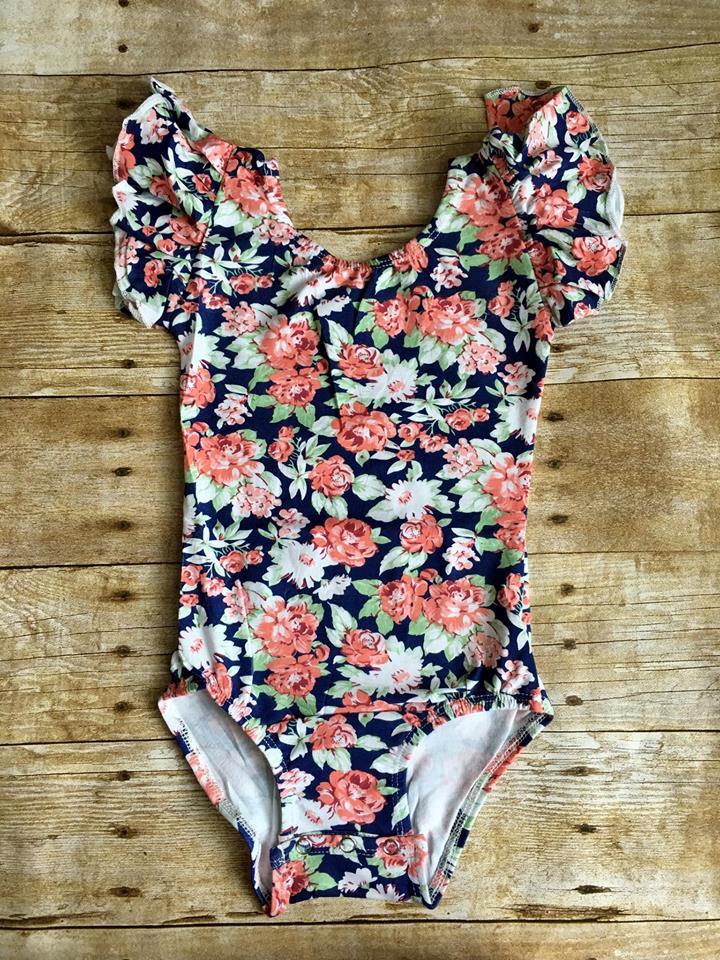 Navy Floral Flutter Sleeve Leotard