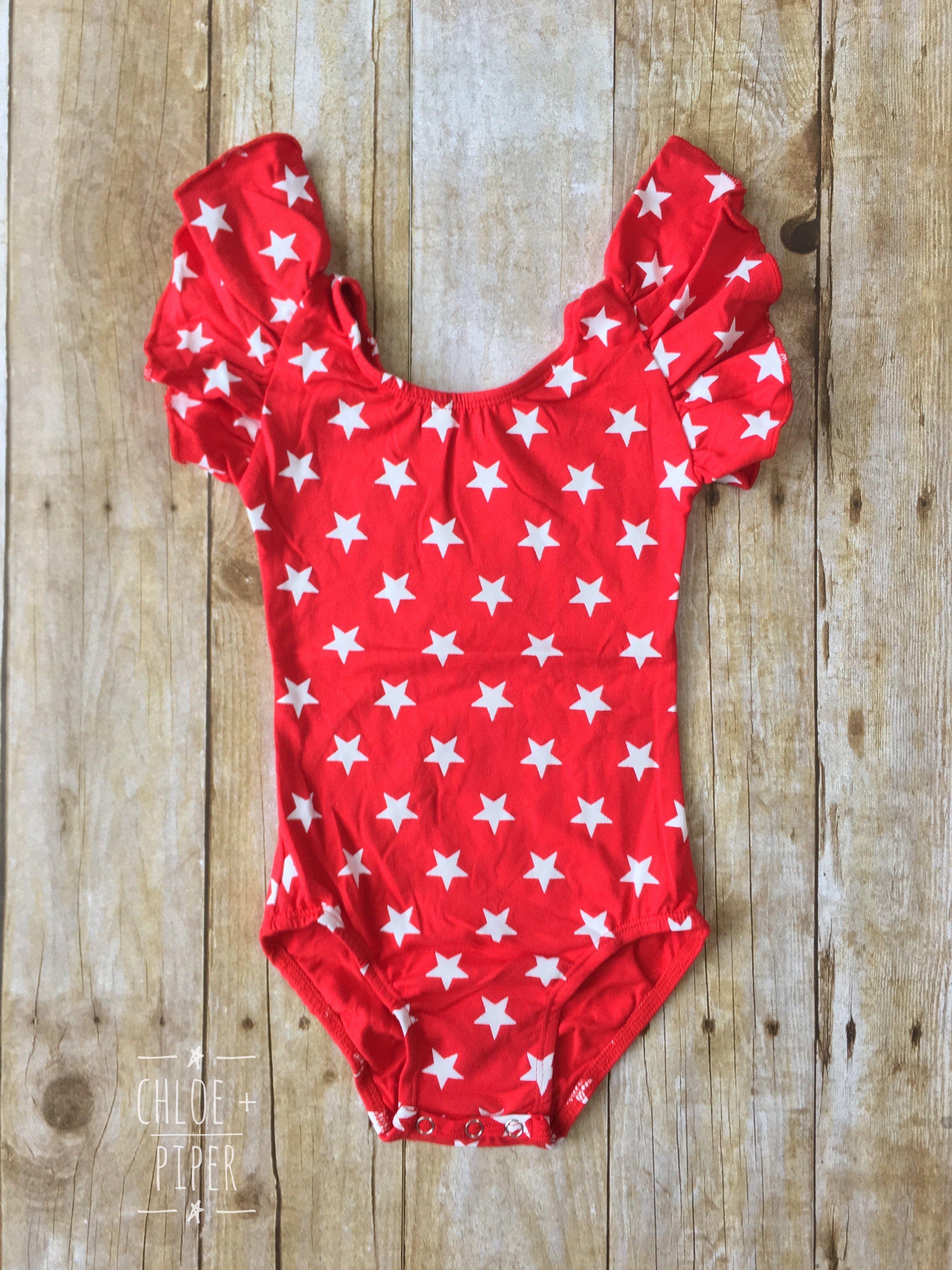 Red with White Stars Flutter Sleeve Leotard