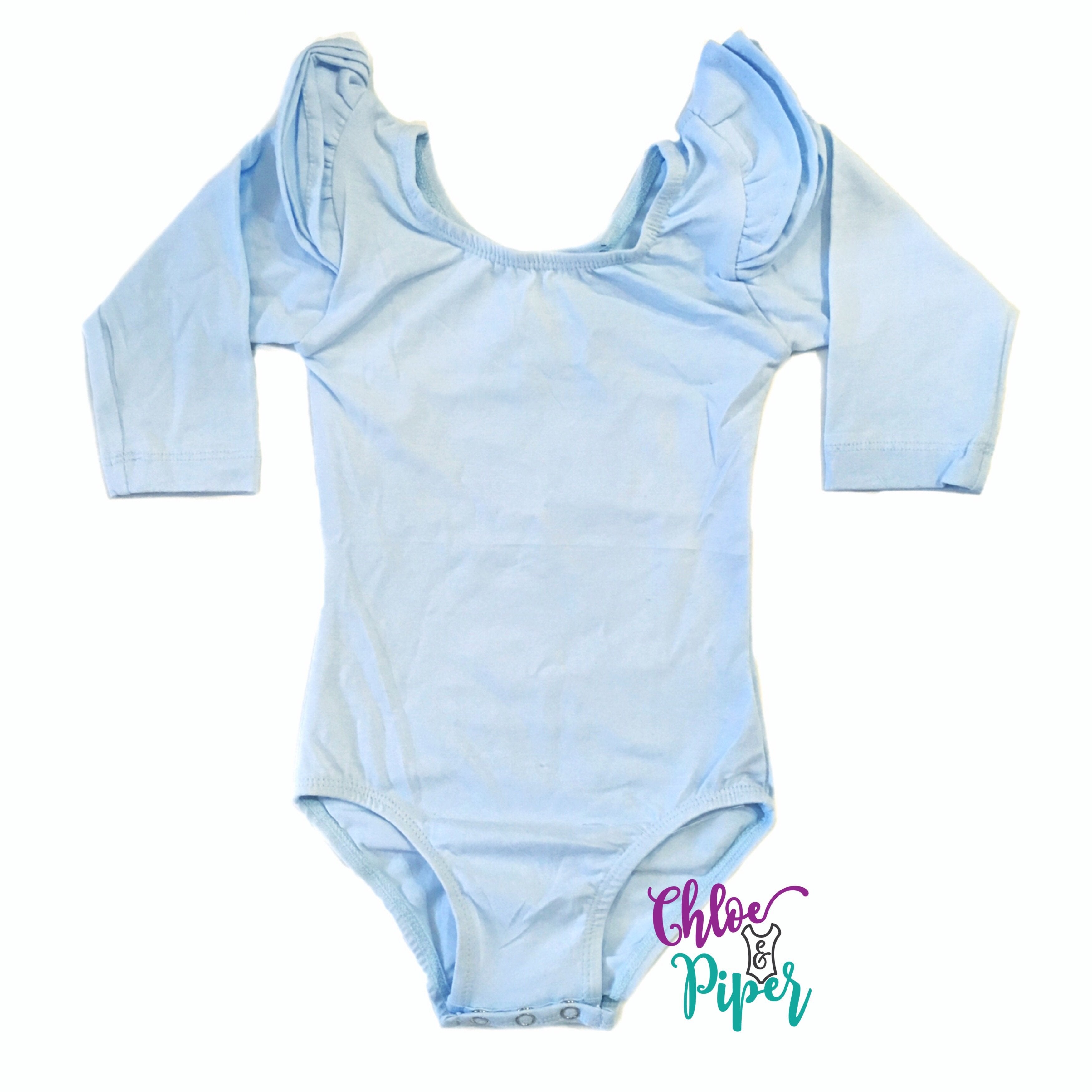 Baby Blue Long Sleeve with Triple Ruffle Leotard