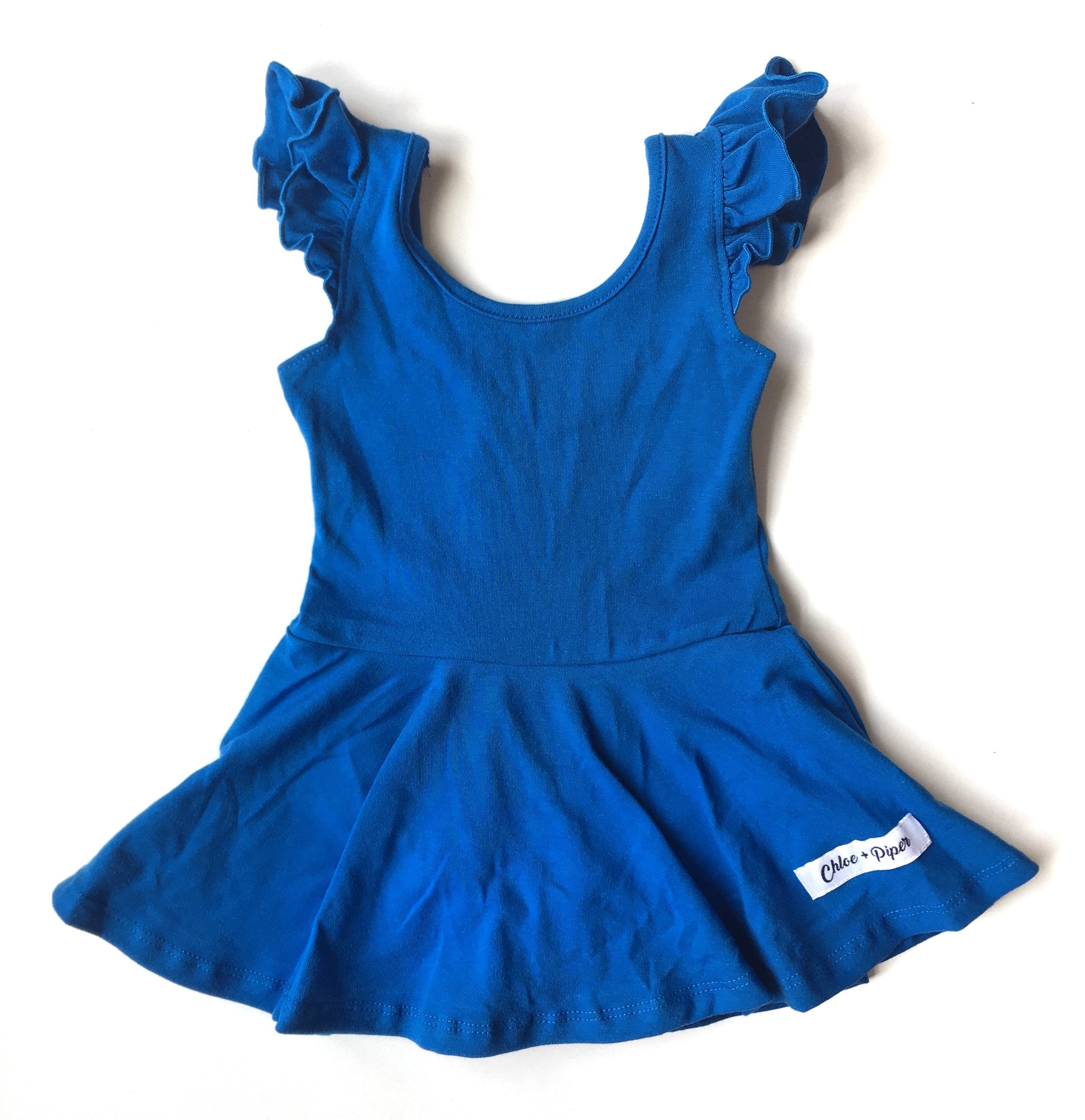 Jewel Blue Flutter Sleeve Skirted Leotard - Scoop Back